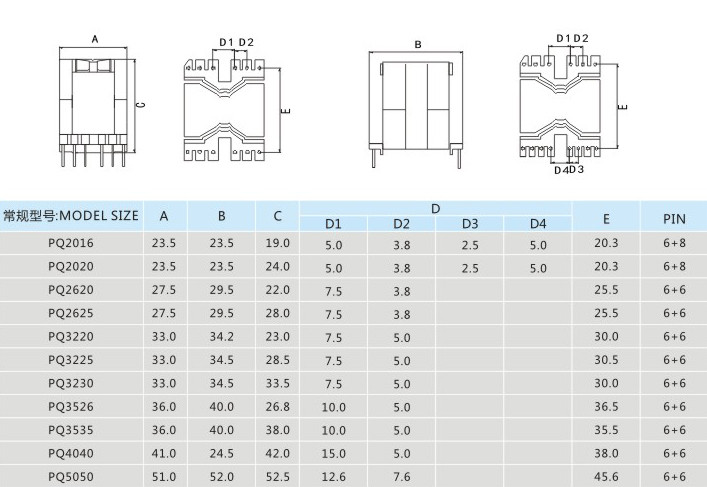 PQ系列高頻變壓器